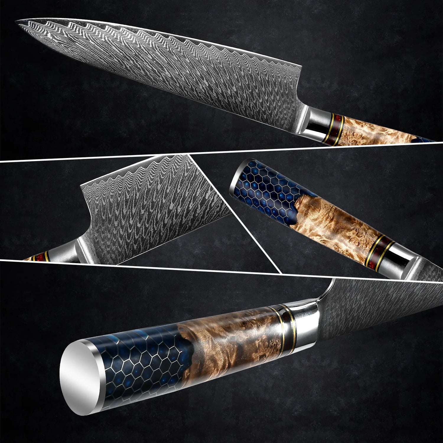 AUS10 high carbon cutting core with 66 layer stainless blade body.